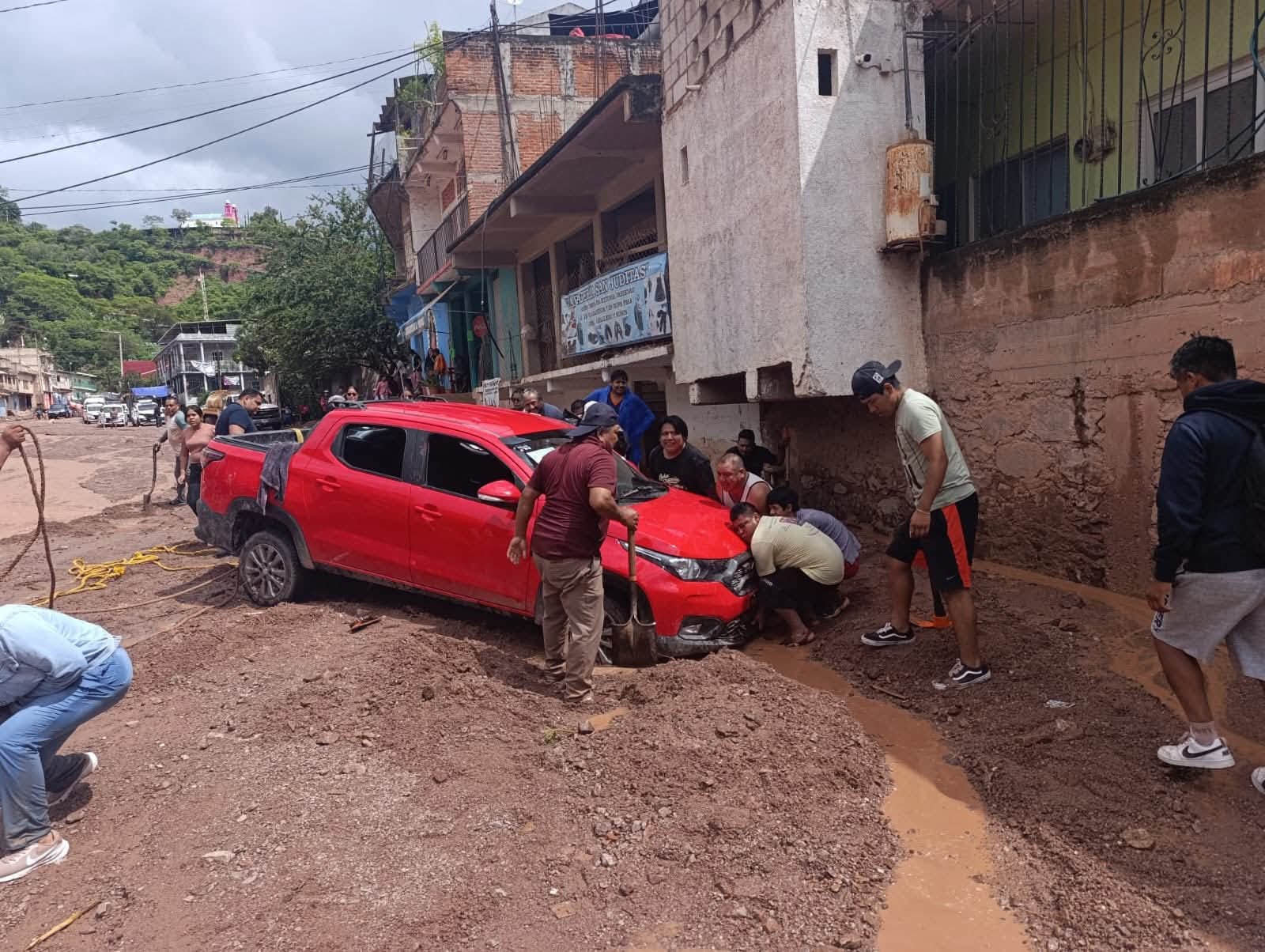 La Secretaría de Gestión Integral de Riesgos y Protección Civil del Estado informó que el personal de la dependencia atiende el estancamiento de varios vehículos atrapados en el caudal, tras las fuertes lluvias registrada esta tarde.