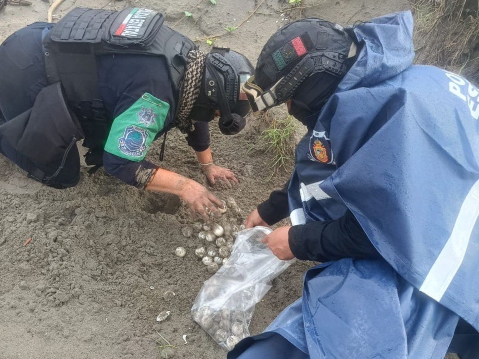 En Acapulco, agentes de la Policía Ecológica de la Secretaría de Seguridad Pública acopió 84 huevos de tortuga marina, tras atender de manera inmediata un reporte ciudadano sobre la presencia de una tortuga desovando en la playa Barra Vieja.