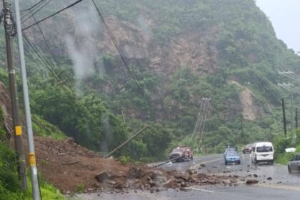 La mañana de este lunes, como consecuencia de las lluvias, se registra el deslizamiento de un cerro sobre la carretera federal Acapulco-Zihuatanejo, mismo que provoca la caída de un poste sobre, a la ...