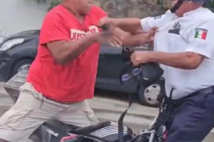 Durante la mañana de este martes un agente de la Policía Vial y un motociclista se agarraron a golpes sobre la Calzada Pie de la Cuesta en el puerto de Acapulco, cuando el primero intentó pedir el res...