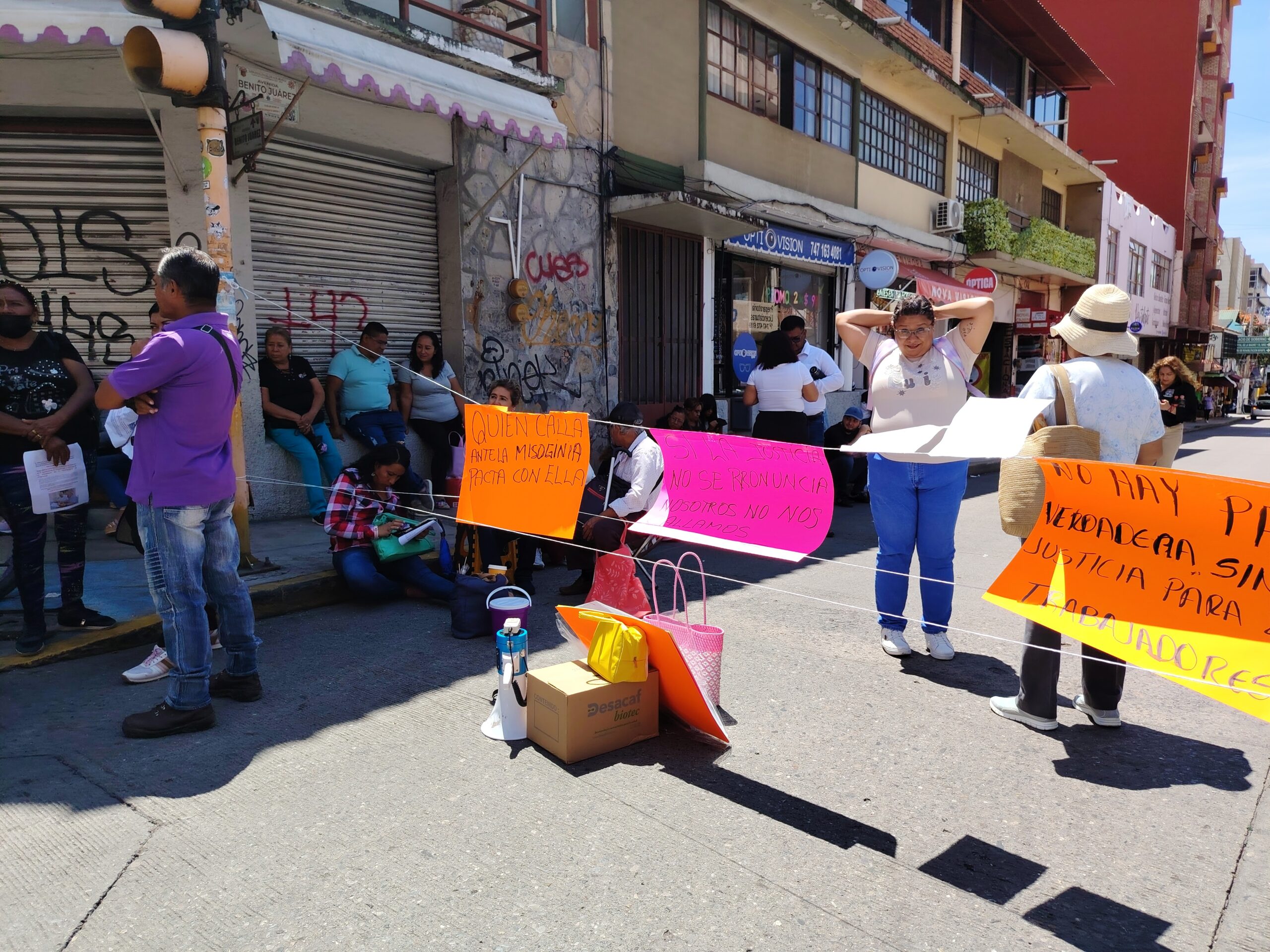 Antegrantes del Sindicato Autónomo y Democrático de Trabajadores del Ayuntamiento de Chilpancingo (SADTACH) bloquean este martes la avenida Ignacio Ramírez, para exigir la restitución de sus oficinas.