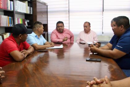 *El titular del SSPGRO, Daniel Antonio Ledesma; el subsecretario de Desarrollo Político, Francisco Rodríguez y el director de Transportes; Arturo Salinas dan seguimiento a las peticiones de dirigentes...