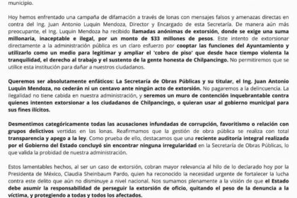 #ACTUALIDAD/Redacción Chilpancingo, Gro., 08 de julio.- El secretario de Obras Públicas del municipio, Juan Antonio Luquin Mendoza, luego de que su nombre apareció en lonas colocadas en la ciudad, den...