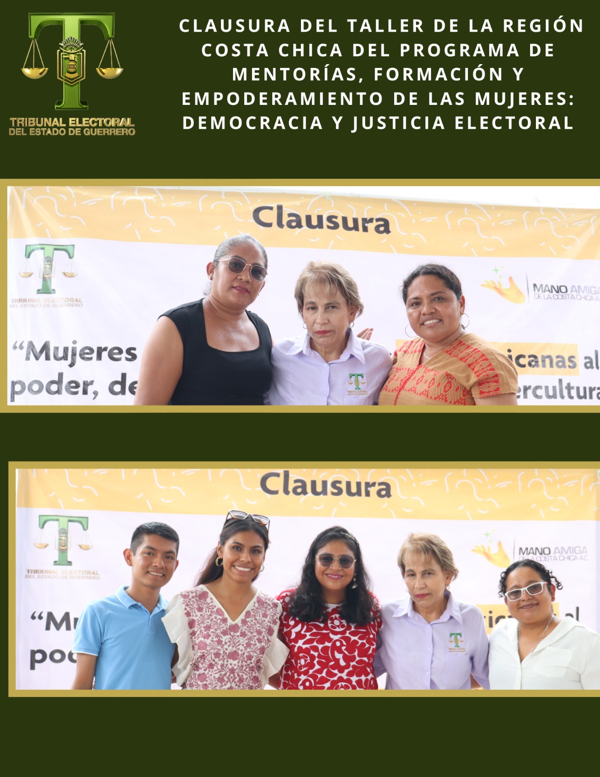El Tribunal Electoral del Estado de Guerrero (TEEGRO), en coordinación con la Asociación Civil «Mano Amiga de la Costa Chica A.C.», concluyó este fin de semana el taller correspondiente al Programa de Mentorías, Formación y Empoderamiento de las Mujeres: Democracia y Justicia Electoral.