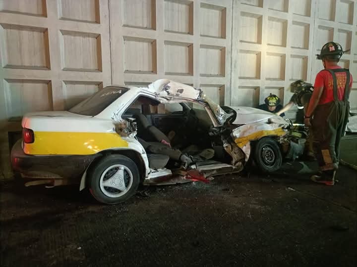 El accidente se registró entre una unidad del Acabus y un taxi colectivo color amarillo de la ruta Renacimiento-Centro.