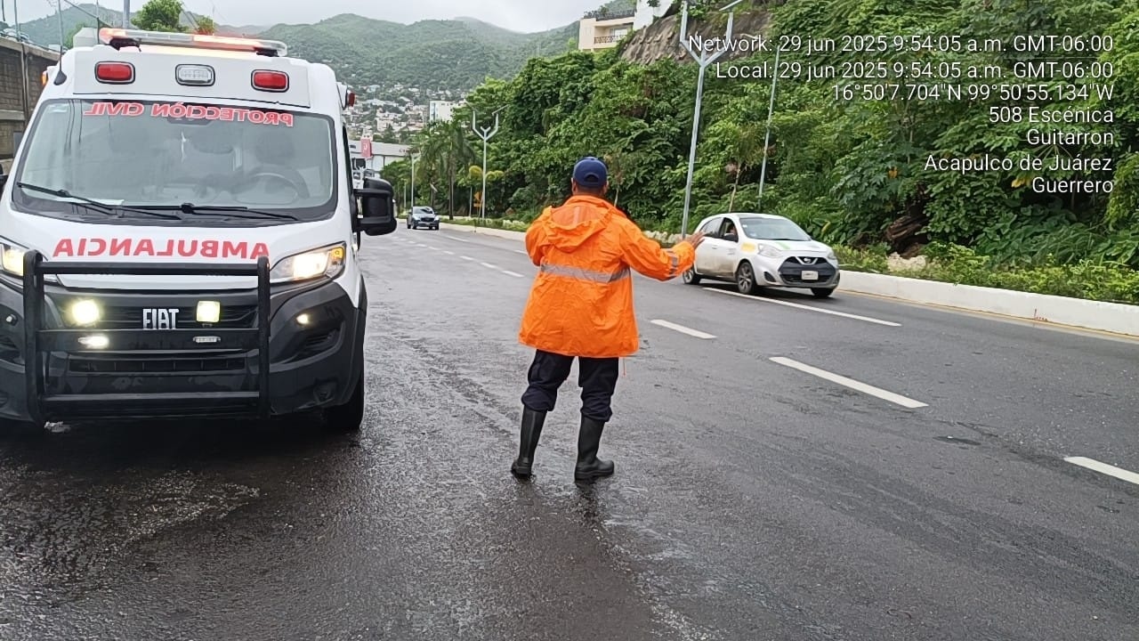 Elementos de la SGIRPCGRO realizan recorridos preventivos en zonas de riesgo en Acapulco por lluvias de la tormenta tropical Flossie