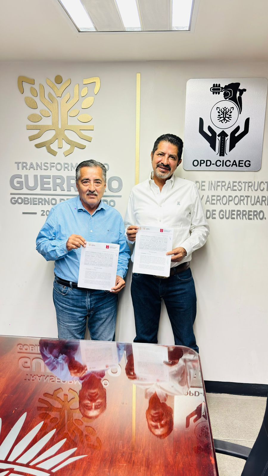 El director general de la Comisión de Infraestructura Carretera y Aeroportuaria del Estado de Guerrero (CICAEG), Martín Vega González, y el presidente municipal de Tecoanapa, Juvenal Poblete Vázquez, firmaron el convenio que establece que el gobierno del estado aportará el 80 por ciento y el municipio el 20 por ciento.