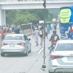 Personal de Tránsito Estatal realiza labores de abanderamiento y ofrece orientación directa a las y los automovilistas en la caseta de cobro de Palo Blanco, con el fin de canalizar el tránsito hacia vías alternas.
