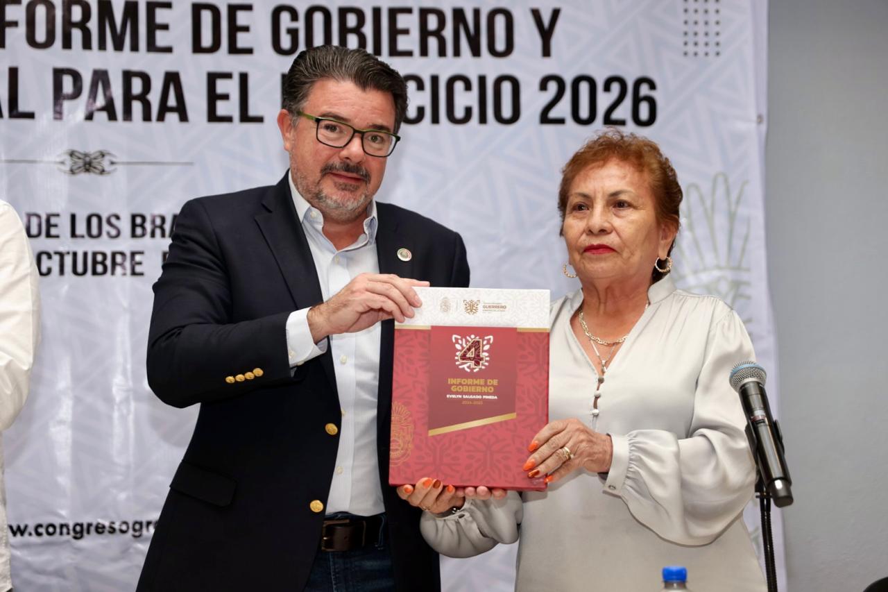 Cumpliendo en tiempo y forma con el artículo 73 de la Constitución Política del Estado Libre y Soberano de Guerrero, a nombre de la titular del Poder Ejecutivo, la encargada de despacho de la Secretaría General de Gobierno, Anacleta López Vega, hizo la entrega del informe por escrito a las diputadas y diputados que integran la Mesa Directiva y la Junta de Coordinación Política (Jucopo) del Congreso local.