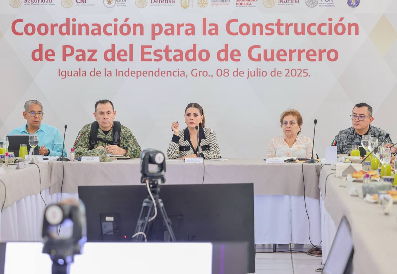 Iguala, Gro., 8 de julio de 2025.- Con el objetivo de reforzar las acciones en materia de seguridad y dar seguimiento puntual a la incidencia delictiva, la gobernadora Evelyn Salgado Pineda encabezó en las instalaciones del 27 Batallón de Infantería en Iguala, los trabajos de la Mesa de Coordinación para la Construcción de la Paz, con presidentas y presidentes municipales de la región Norte de Guerrero.