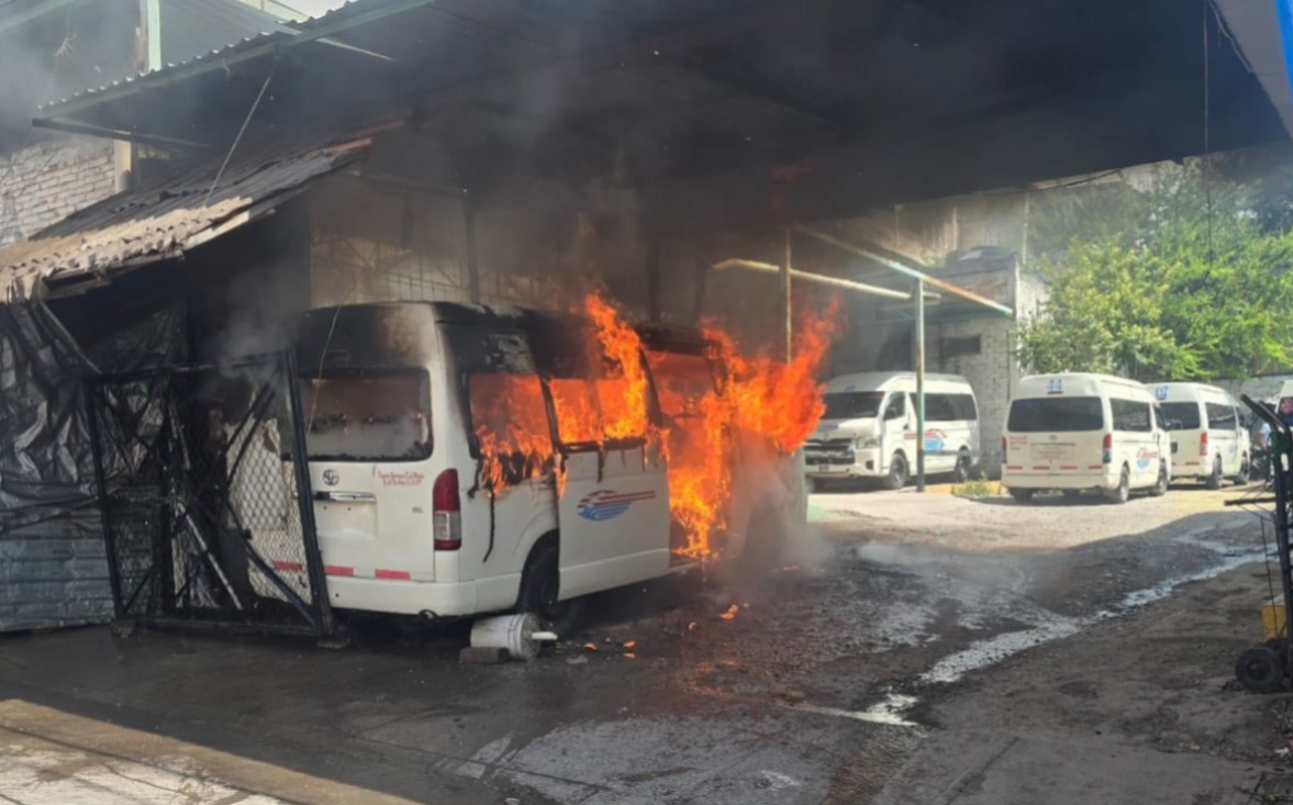 La unidad esperaba su turno para cargar pasajeros, cuando fue incendiadas. La zona fue acordada por elementos de seguridad pública.