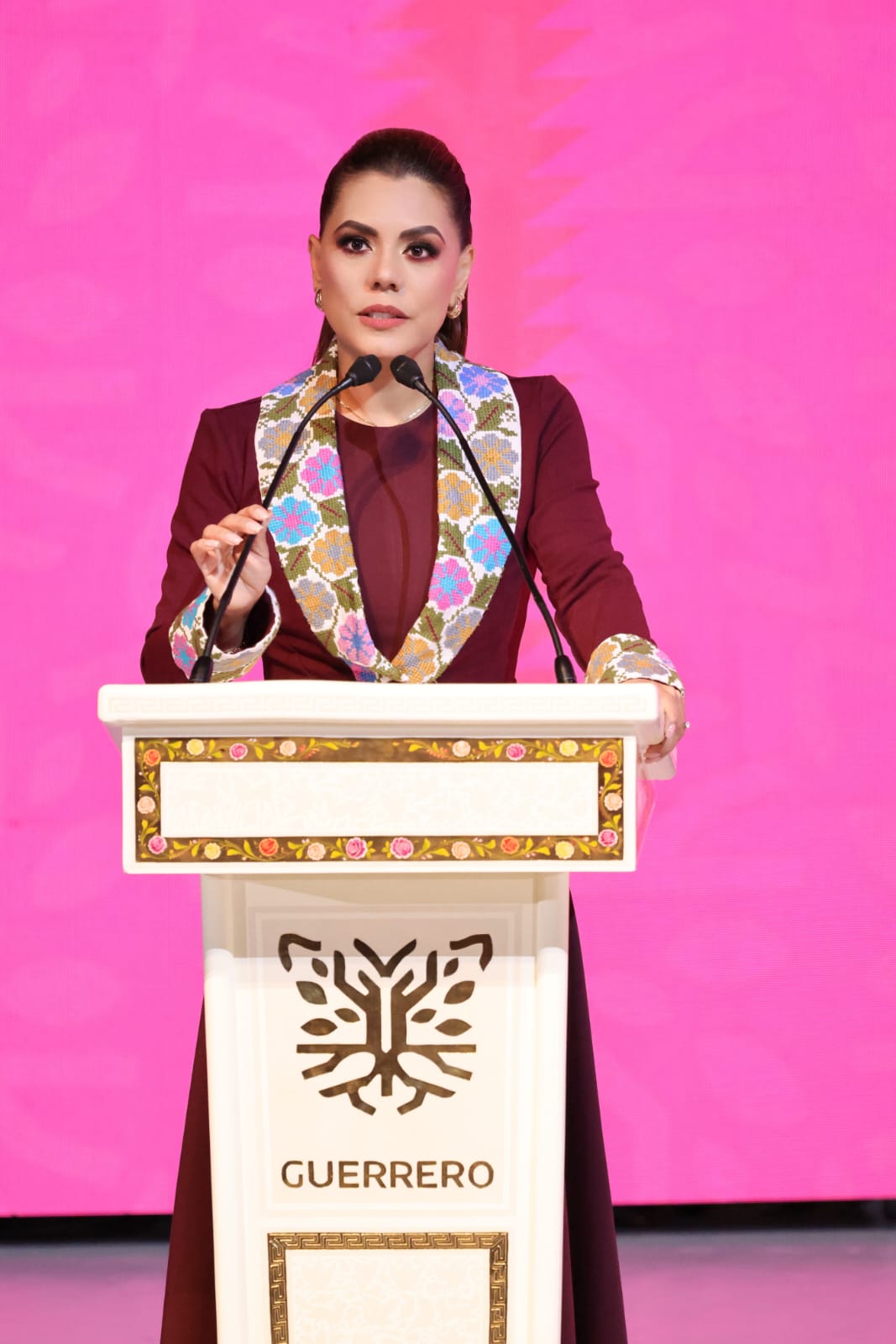 En el Auditorio “Sentimientos de la Nación”, en este acto histórico, la primera gobernadora de Guerrero subrayó los resultados en los cinco ejes de su administración: Infraestructura para el bienestar; bienestar, igualdad y derechos sociales; transformación turística y desarrollo económico; administración y buen gobierno y la estrategia “Transformando Guerrero que han dado resultados tangibles.