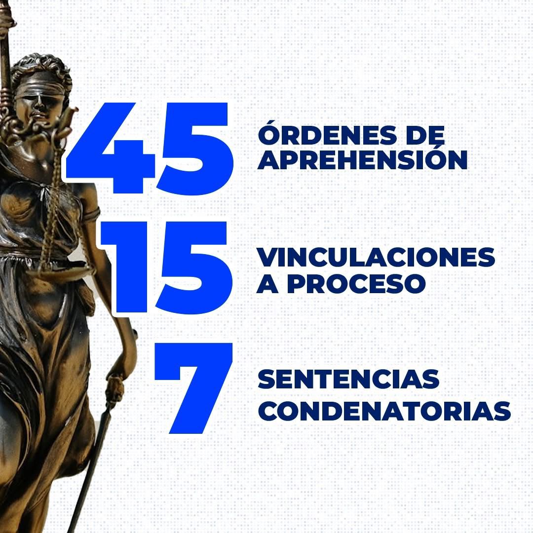 La Fiscalía Especializada para la Investigación de Delitos Sexuales y Violencia Familiar, consolidó 6 órdenes de aprehensión ejecutadas, 1 detención en flagrancia, 8 vinculaciones a proceso, 74 medidas de protección otorgadas a favor de las víctimas y 2 sentencias condenatorias .