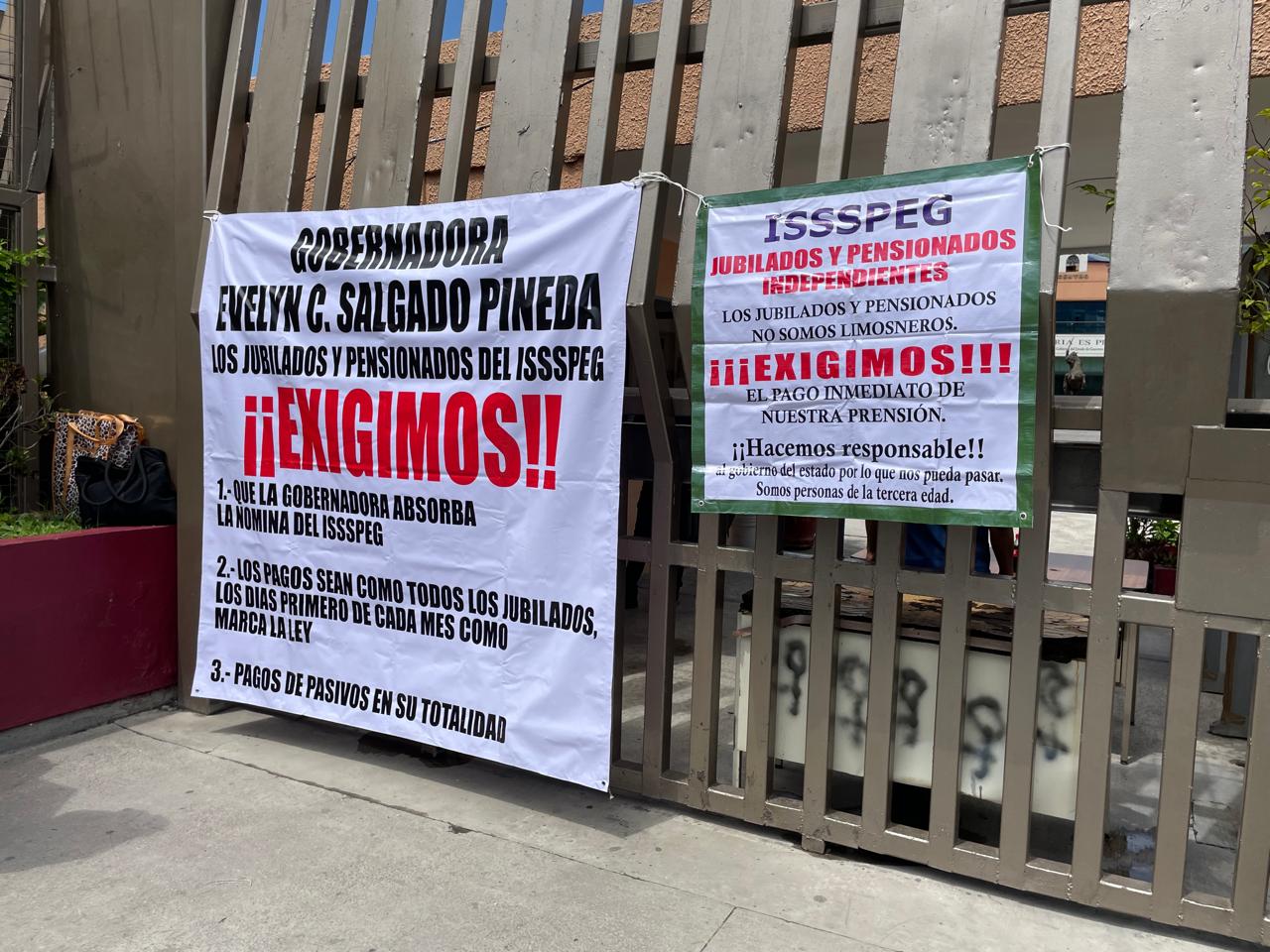 Este viernes jubilados y pensionados de la asociación 8, bloquearon las vialidades del bulevar René Juárez Cisneros, inconformes por retrasos en el pago de pensiones.