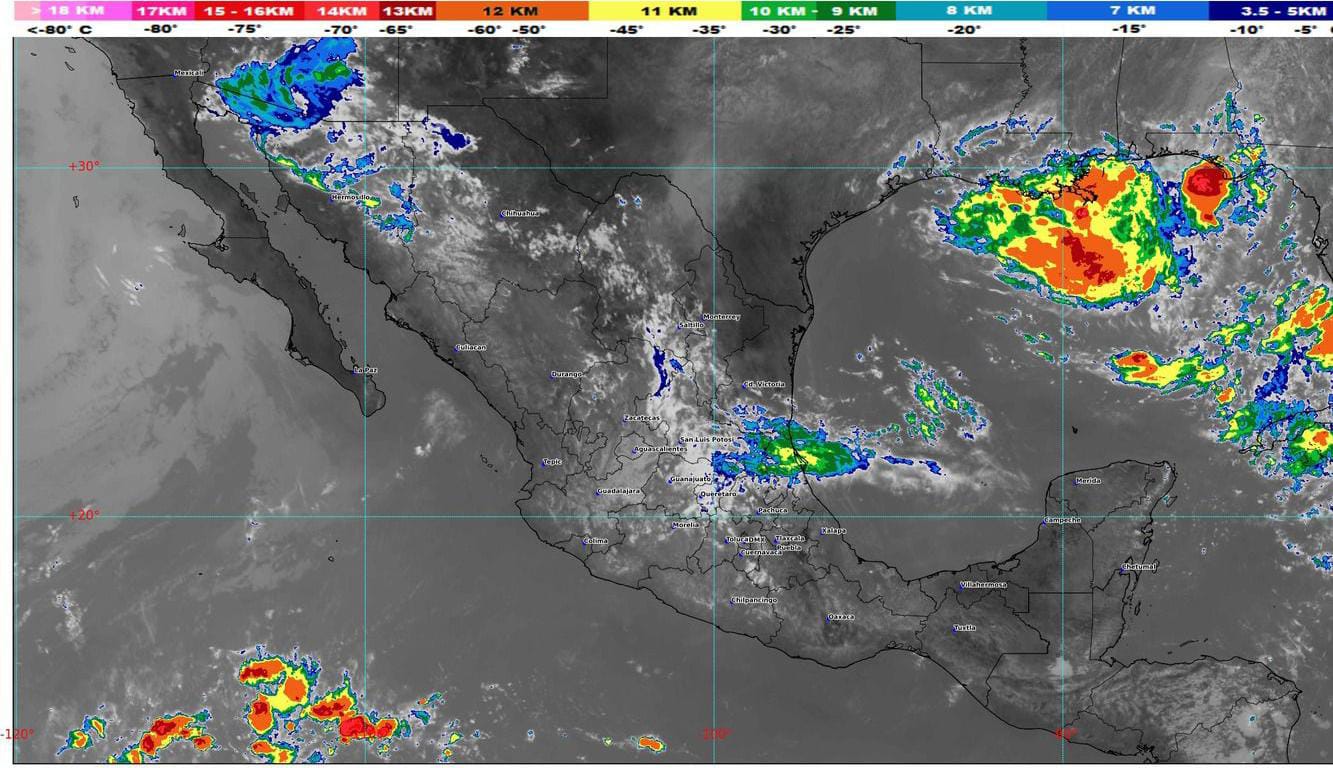 Estas condiciones climatológicas, de acuerdo con el pronóstico meteorológico de este día, también serán favorecidas por un Canal de Baja Presión que se extiende al norte del estado, que desarrollará nubes con tormentas eléctricas acompañadas de rachas de viendo de 40 a 60 kilómetros por hora al finalizar la tarde o durante la noche.