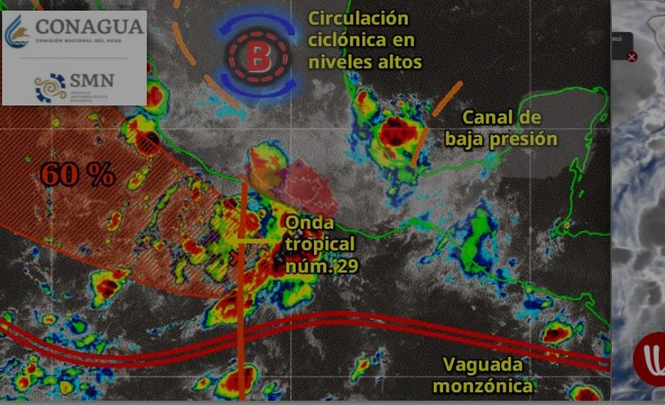 De acuerdo con el reporte meteorológico, estas condiciones son consecuencia de la interacción de un canal de baja presión y una circulación ciclónica en niveles altos, que en conjunto con la Onda Tropical Número 29 sobre la Costa Grande y el ingreso de Aire Marítimo Tropical, propician la formación de nublados densos y precipitaciones.