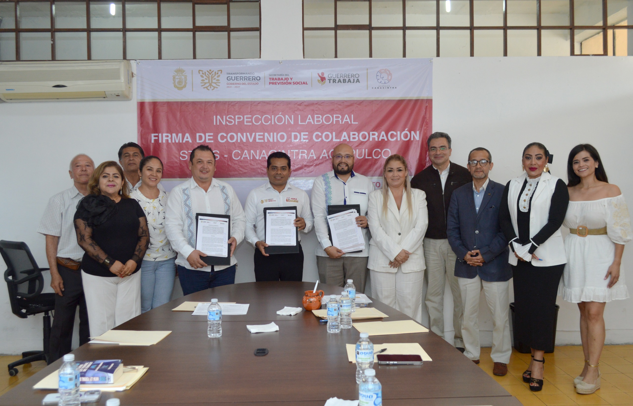 Chilpancingo, Gro., 12 de agosto de 2025. – Con el objetivo de fomentar una cultura de autocumplimiento que permita a las empresas operar con certeza jurídica, garantizar entornos laborales seguros y saludables, así como fortalecer sus programas de capacitación y adiestramiento en favor del sector laboral, el secretario del Trabajo y Previsión Social, Omar Estrada Bustos, y el presidente de CANACINTRA Acapulco, José Mario Moreno Rojas, firmaron un Convenio de Colaboración en materia de inspección laboral, mismo que resultará en beneficio para la base trabajadora del puerto.