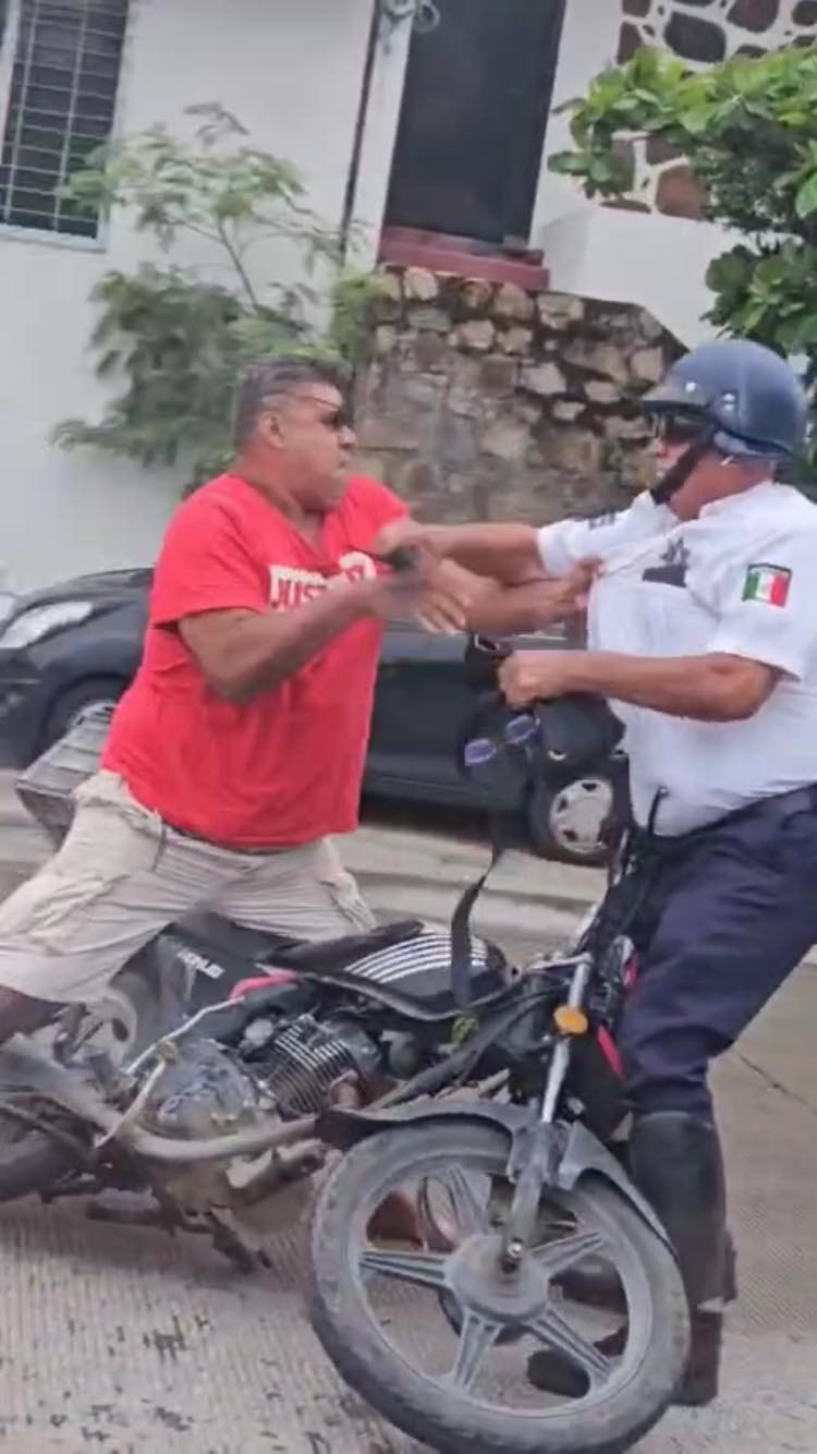 Durante la mañana de este martes un agente de la Policía Vial y un motociclista se agarraron a golpes sobre la Calzada Pie de la Cuesta en el puerto de Acapulco, cuando el primero intentó pedir el respeto a las reglas de tránsito.