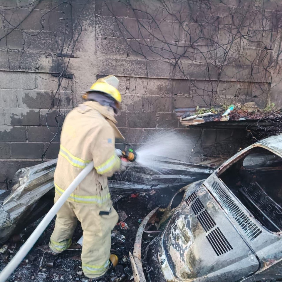 Personal de bomberos de la Secretaría de Gestión Integral de Riesgos y Protección Civil sofocaron la mañana de este martes en la colonia Alborada Cardenista en el puerto de Acapulco un incendio que consumió dos vehículos en calidad de chatarra.