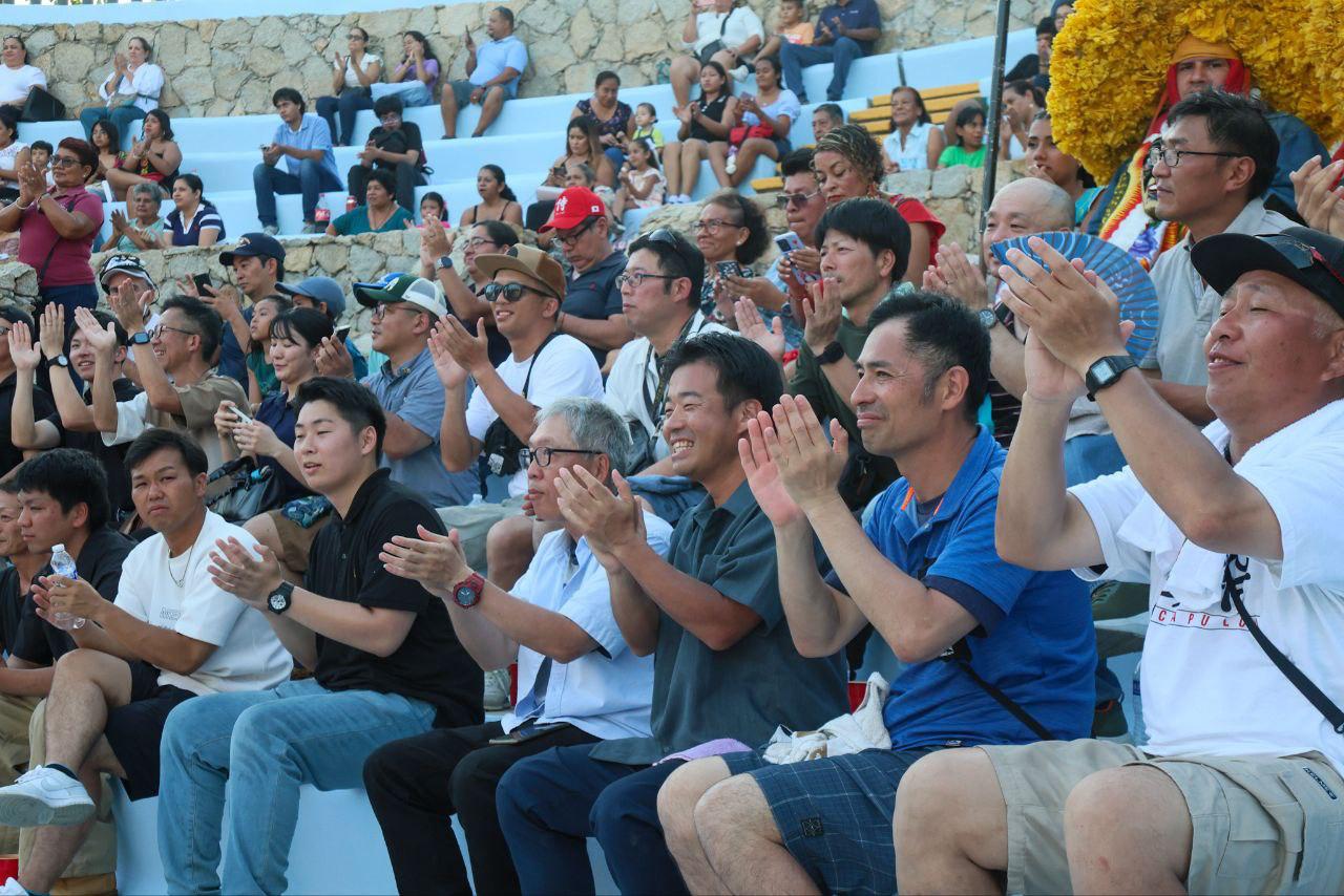 Esta fiesta de color y magia llenó de mucha alegría el escenario del auditorio al aire libre del Parque Papagayo, donde acapulqueños dieron la bienvenida a los nipones bailando el chile frito con ellos.